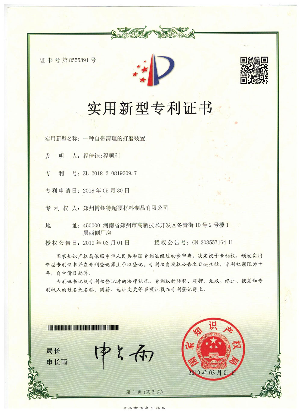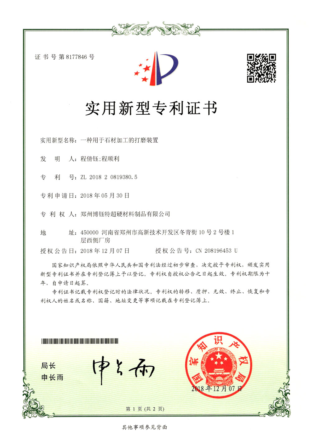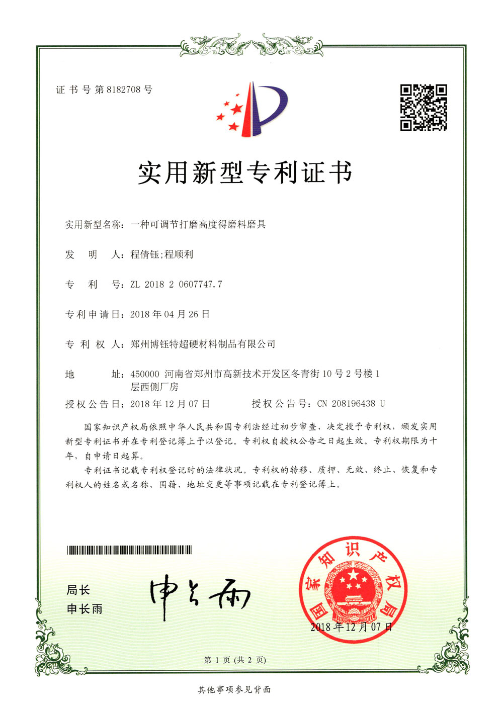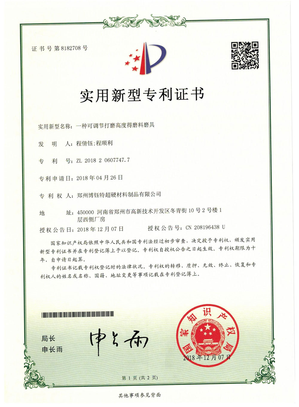 博爾德集團旗下專利證書展示